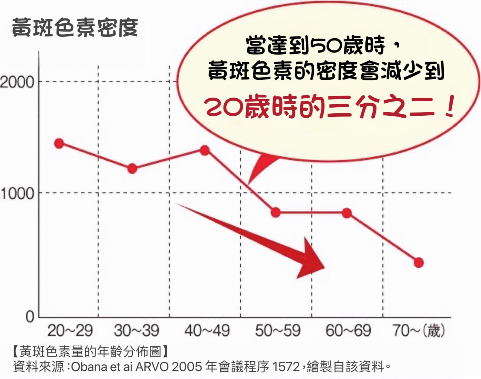 葉黃素在對“看”很重要的視網膜中,在容易受到光損傷的黃斑部位也特別多。 但是過了40多歲開始減少,之後也逐漸減少。 因為不能在體內生成,所以需要從外面補充。